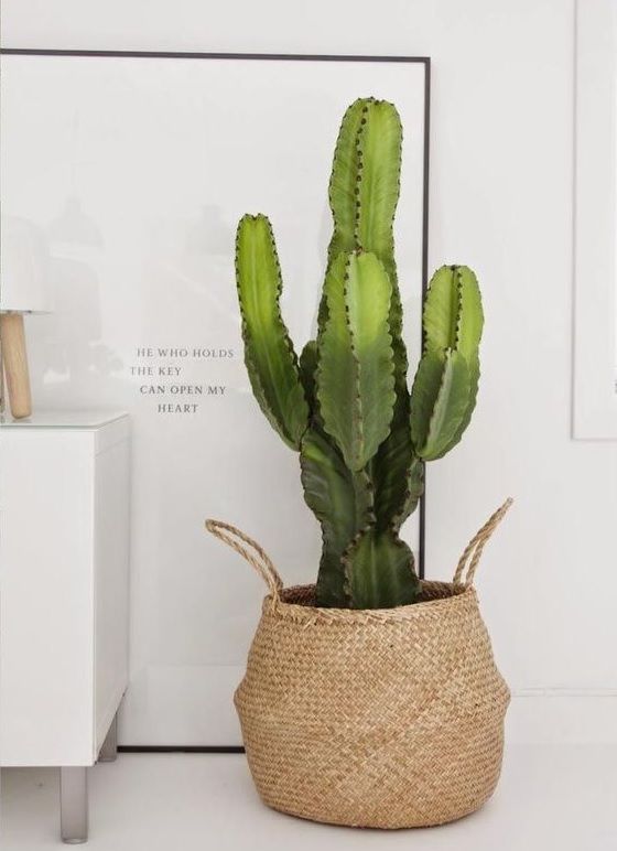 Es una de las opciones que más creativas me parecen. Plantas para interior, de hojas grandes y verdes, o grandes cactus ambientan creando una combinación ideal. Siempre poner un plato en la base y sobre él una maceta tradicional, así se podrá contener la tierra sin humedecer el cesto. Chequea que la maceta que elijas poner adentro del cesto no se vea.