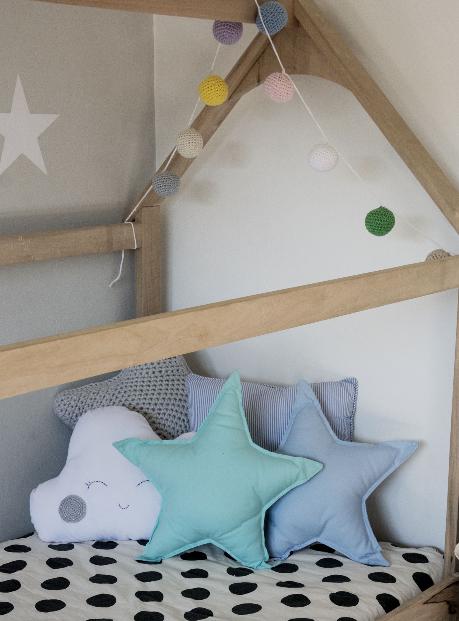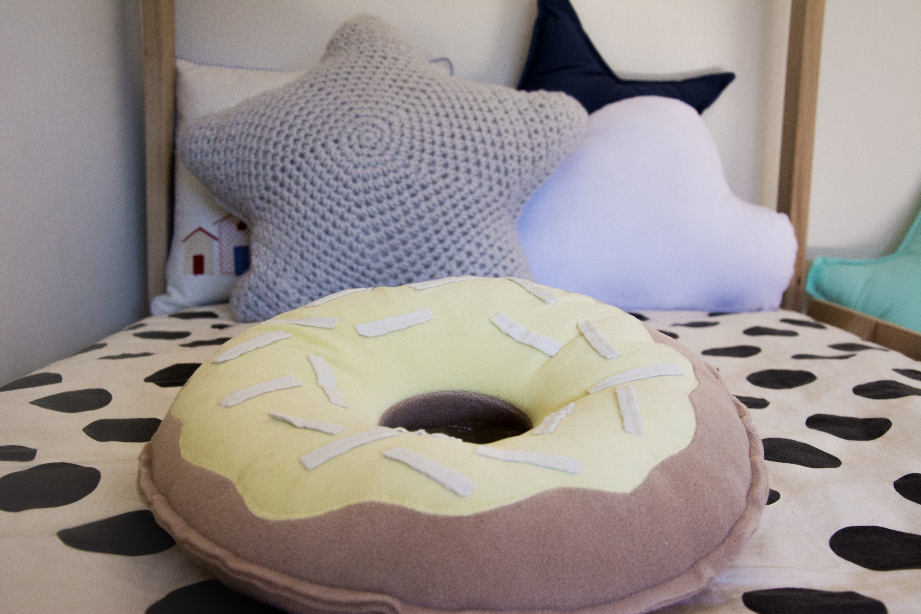 Los almohadones se encuentran en forma de dona, estrella o nube. Tienen una gran variedad de colores que permiten armonizarlo con los demás objetos, logrando una deco perfecta.