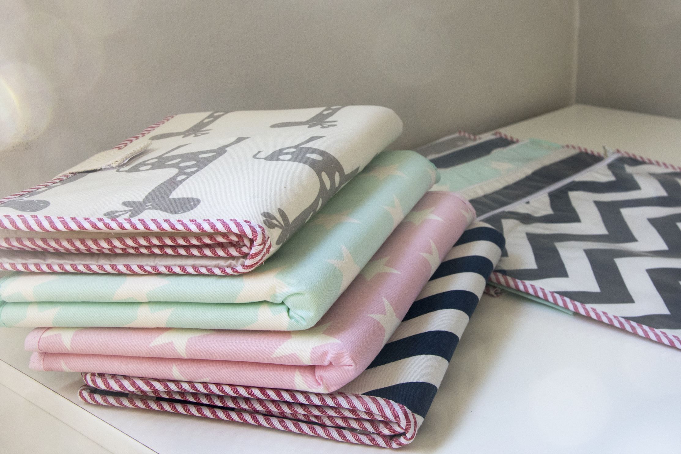 Contenedores, grandes mejor para juguetes o ropa o chicos como para pañales. Algunas estampas permiten también que se pueden usar para toalla de manos o papel higiénico para baños.