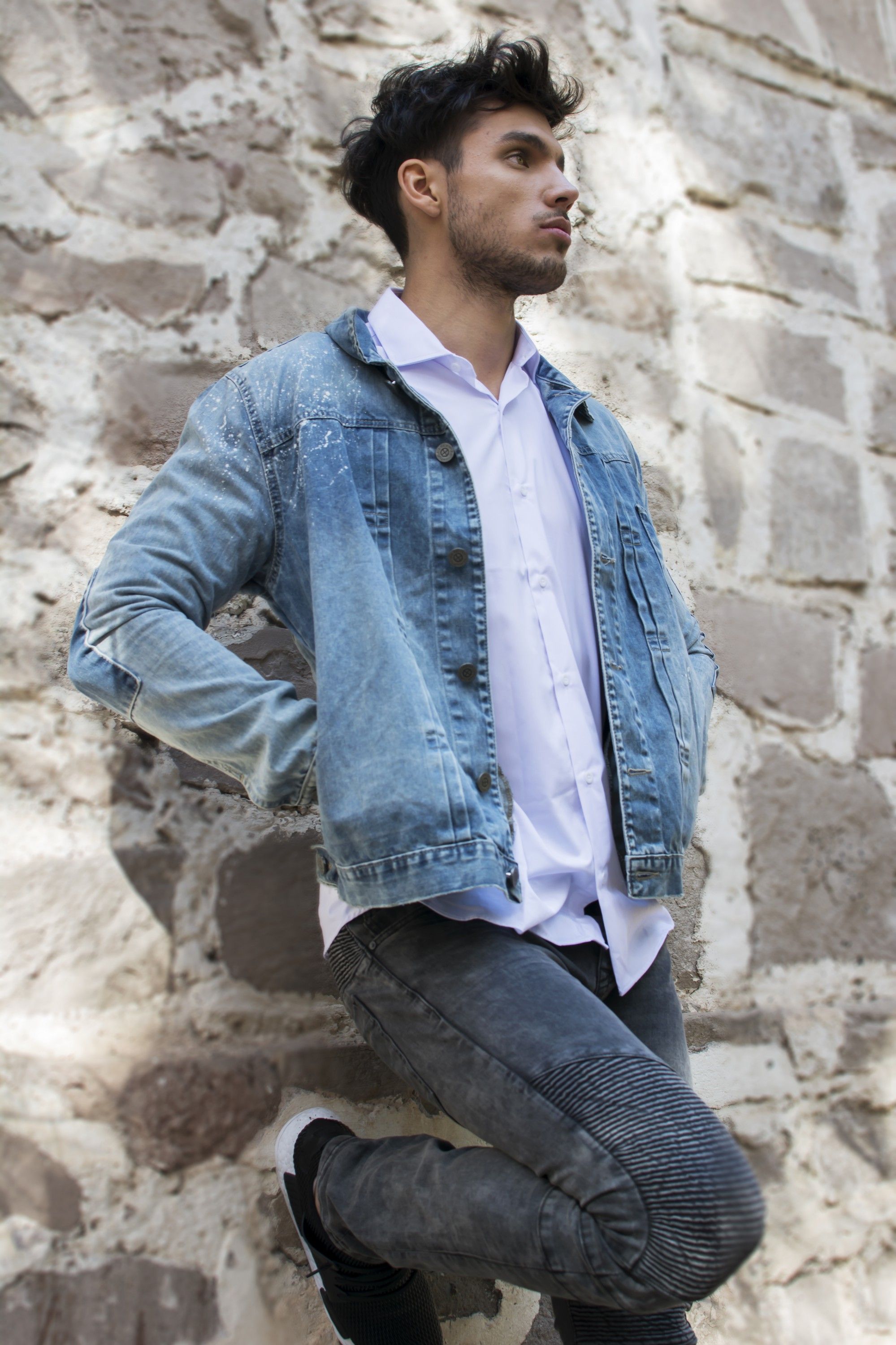 Otra opción para crear un look más urbanwear es el denime glam campera con detalles + camisa corte Slim fit + pantalón skinny + zapatillas siliconadas, da un look más relajado y canchero propio del estilo noventero. Gaban Cruzado $3270 - Camisa Cedro $2100 - Jean Lars $2425 Cardigan Ayoten $2990 -Camisa Los Blancos $1200 - Chino Lost $ 2019 - Borcego Arzolla $4400 Gaban Burdalo $5900 -Remera Gante $730 - Chalina Neron $950 - Jean Fedra $3080- Borcego Milán $4600