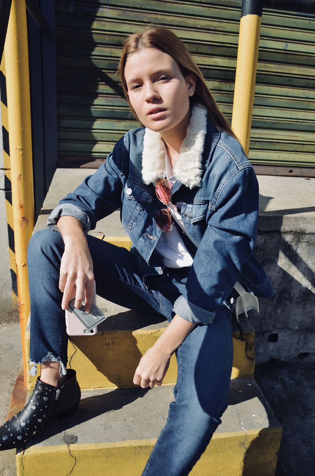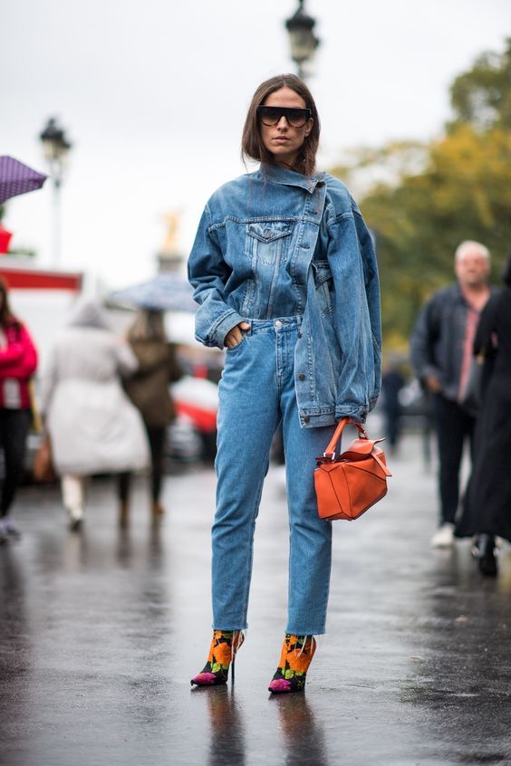 Pero si optamos por solo dos piezas de jean que no van a estar superpuestas es preferible ir por ambas del mismo tono o similar. Por ejemplo la combinación jean + campera.