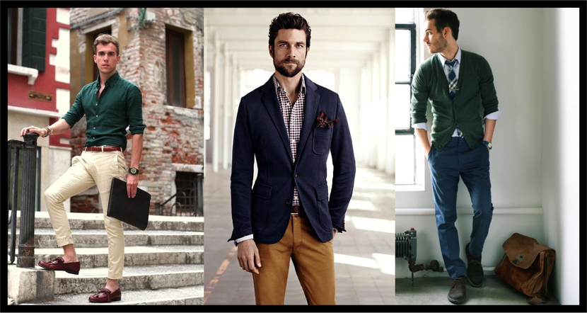Este look puede ir desde un traje con o sin corbata, a una americana con un pantalón corte chino oscuro o un pantalón de vestir con camisa o remera de punto.