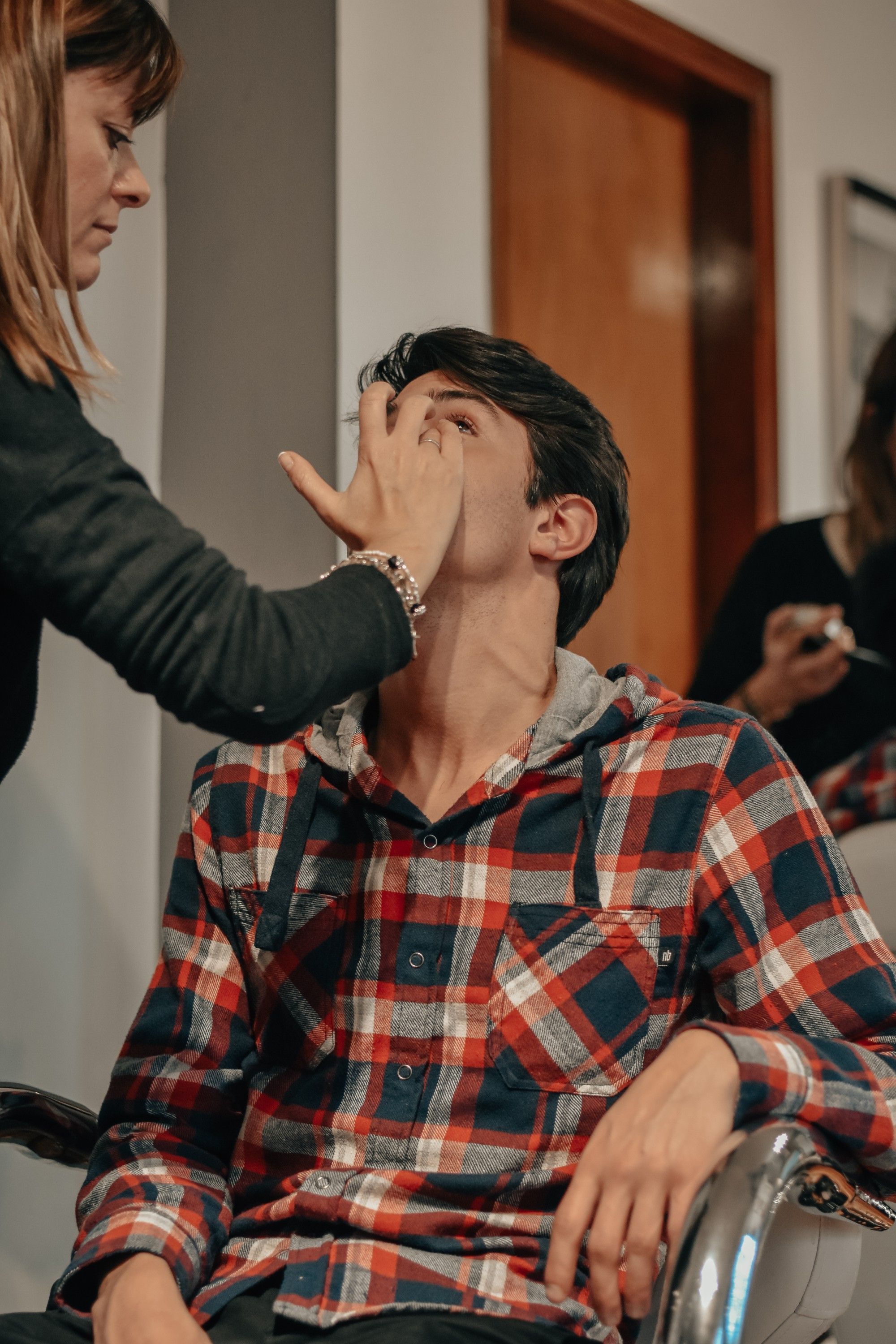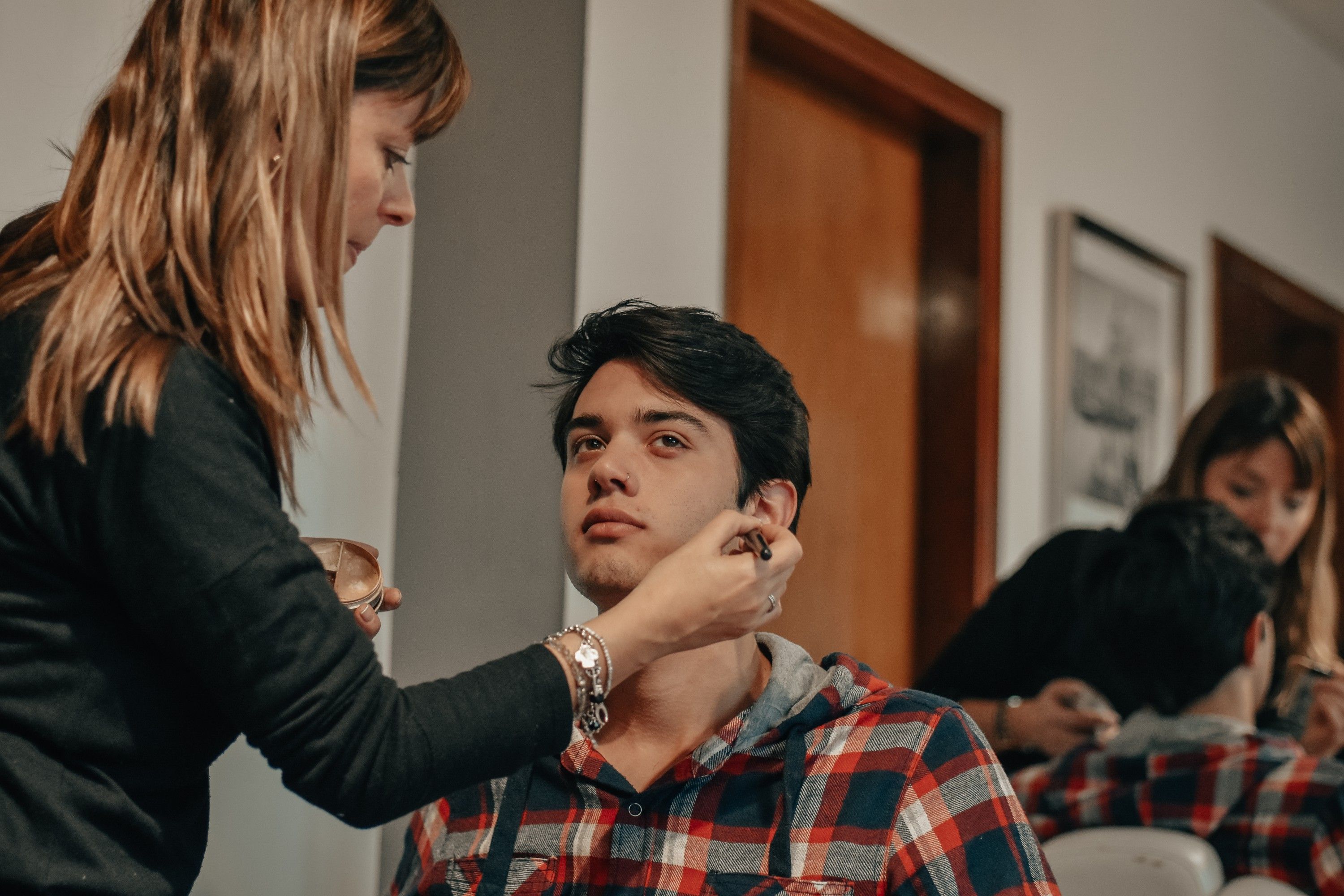 Florencia Raviolo trabajando sobre el rostro de Bernardo Giaquinta.