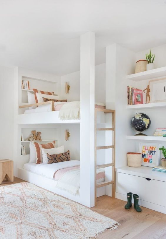 Esta habitación ¡me encanta! La aplicación de la madera lo hace un ambiente amable y cálido acompañando al blanco.