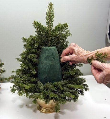 Tener un pinito no es imposible. Compra un oasis (así se llama la esponja verde) y sobre ella pincha ramitas de pinos para recrear uno. Es importante que tenga una buena base para que no se caiga.