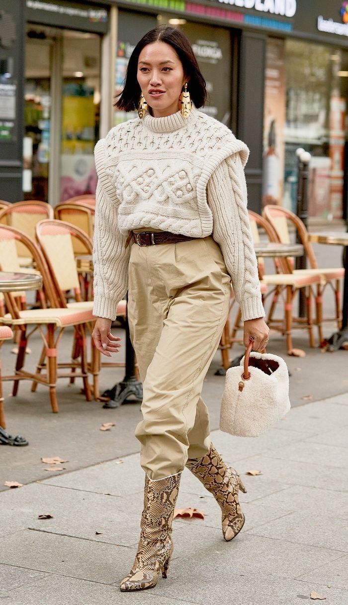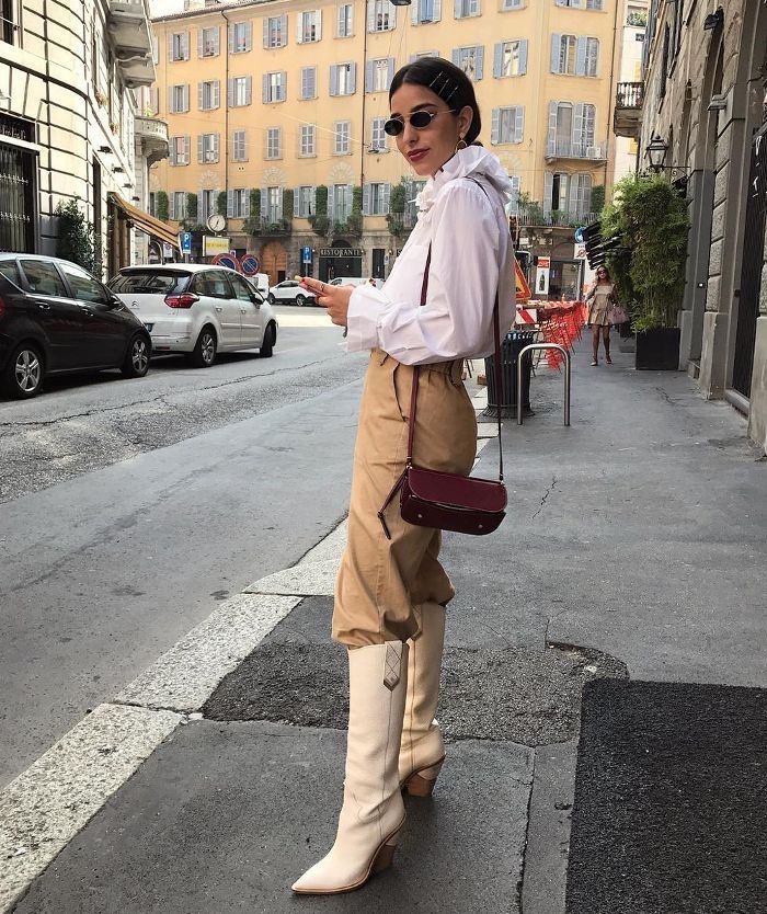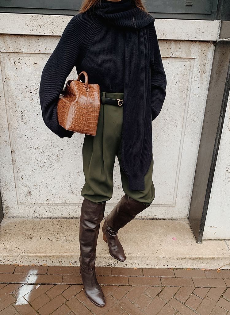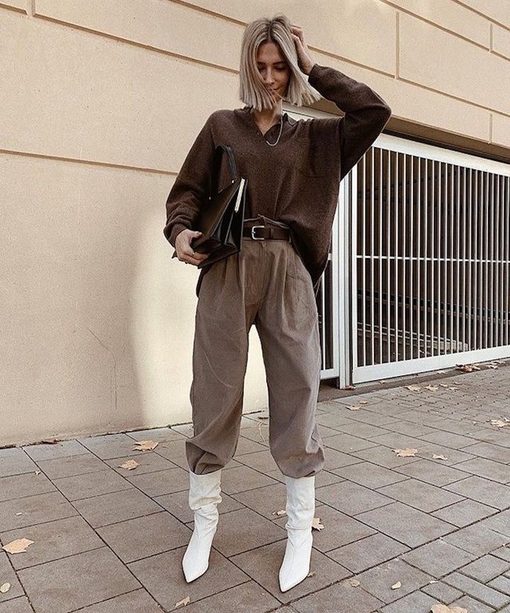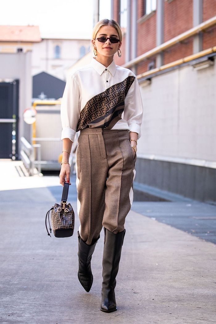 La idea es que combines tus pantalones slouchy o baggy con unas botas de caña alta estilo vaqueras, de combate o de animal print.