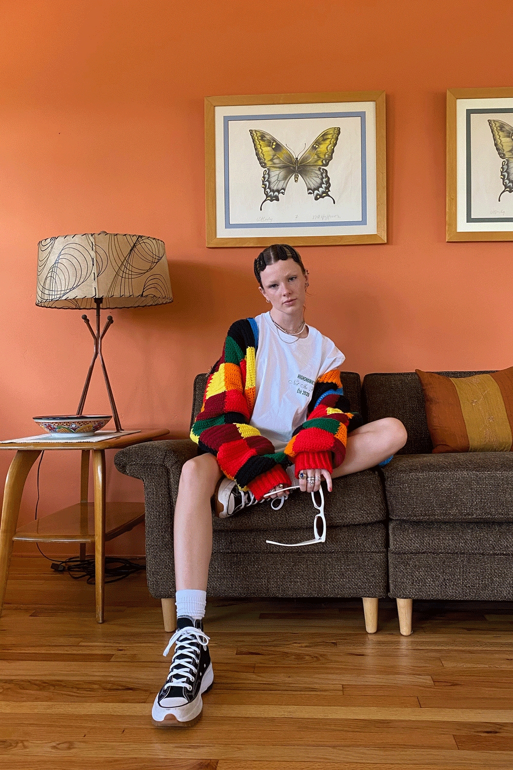 Harry uso este cárdigan en el ensayo de The Today Show en febrero y todos los fashionistas enloquecieron. El famoso sweater de la marca JW Anderson de inspiración vintage presenta cuadrados verdes, rojos, naranjas y amarillos.