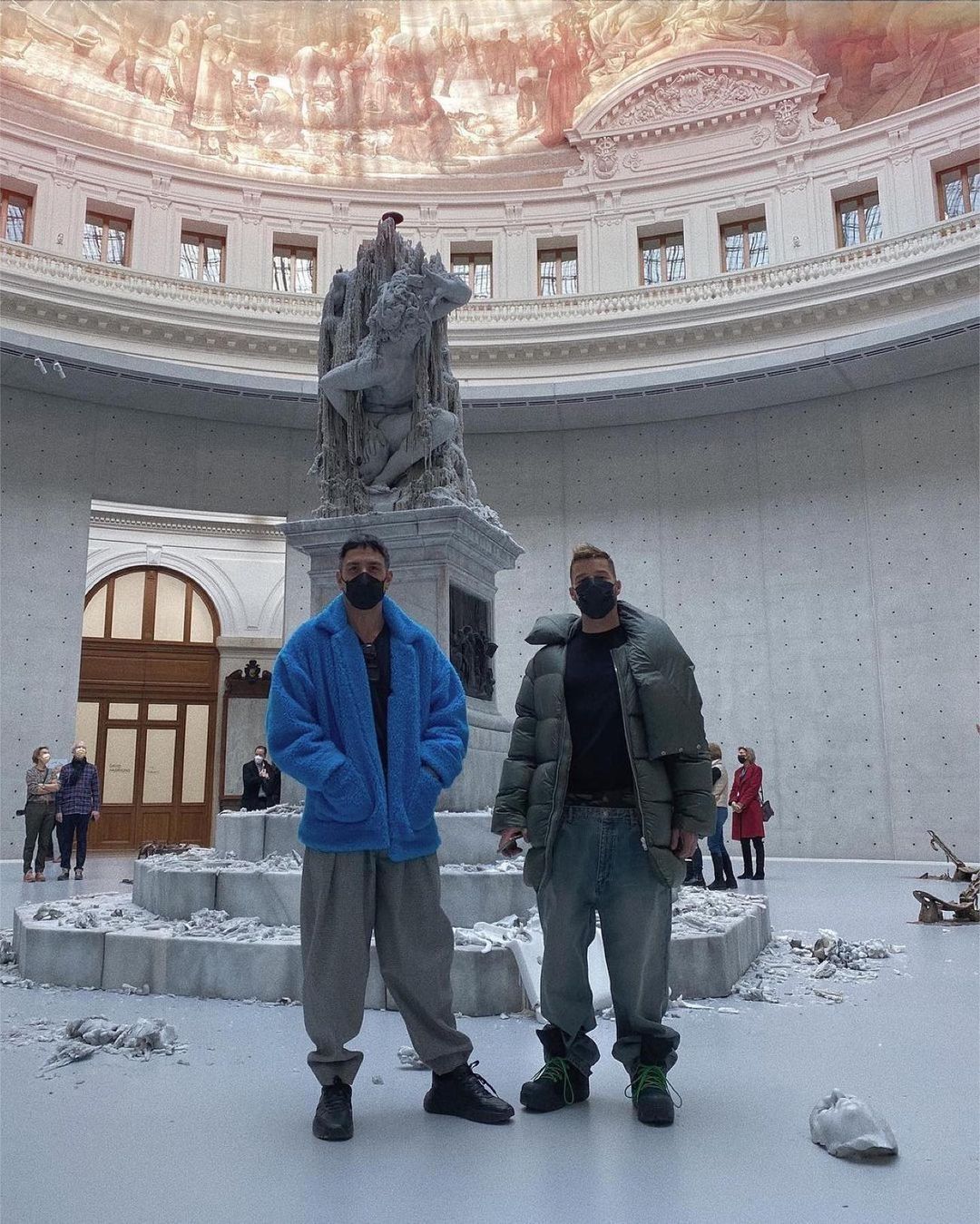 Jennifer López saluda desde su cuenta en Instagram feliz en su “súper puffer”. Y Ricky Martin comparte una foto en una exhibición de arte, junto a su esposo, el artista Jwan Yosef, y enfundado en una “mega puffer”.