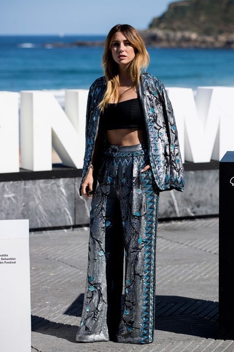 Para un evento más elegante Blanca apuesta por el traje de dos piezas, con un pantalón de tiro alto y suelto y crop top. Tú eliges si lo quieres en un solo color como el nude de la primer foto o si apuestas al estampado en varios colores.