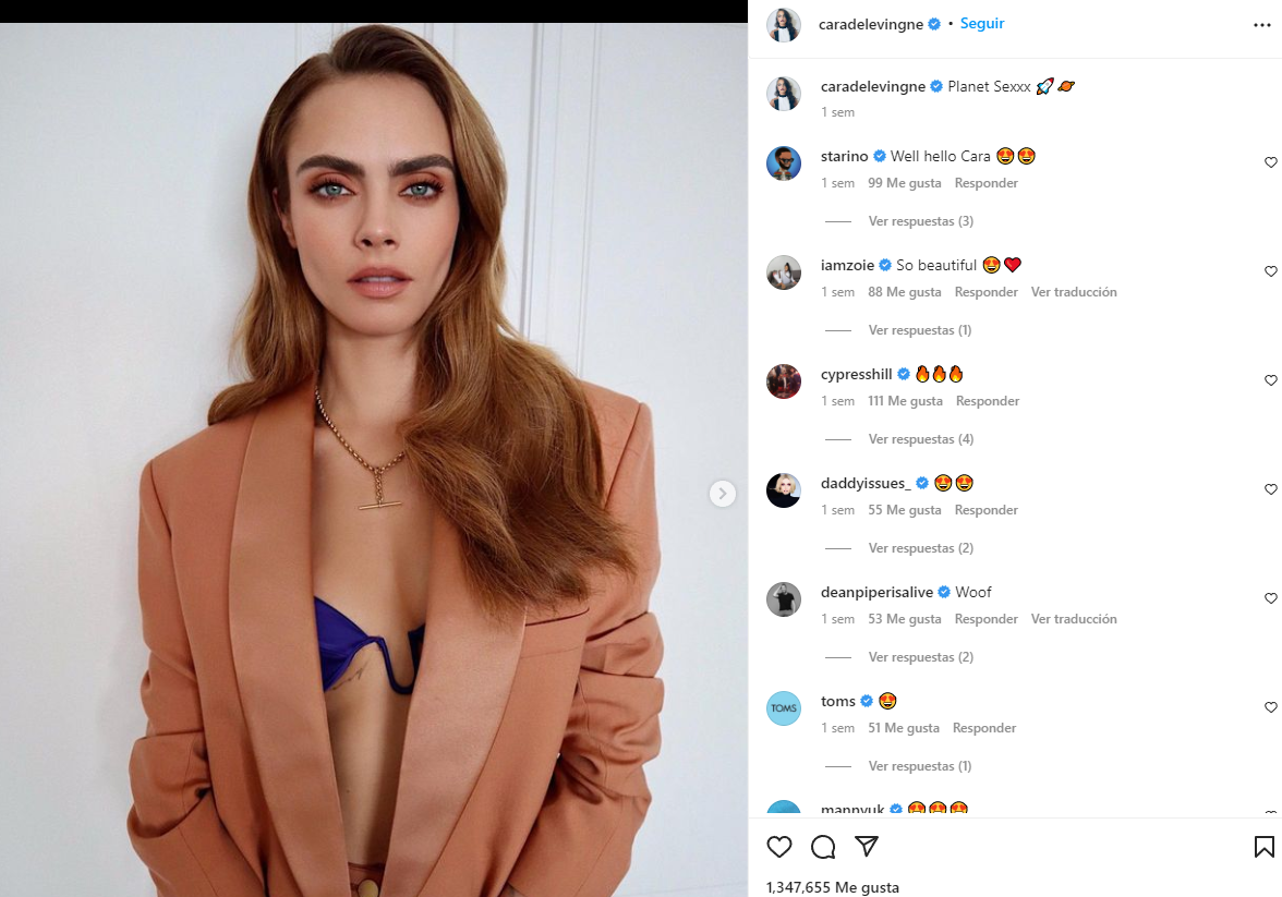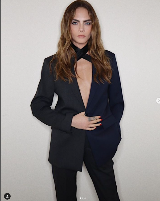 Cara Delevingne es una fan de los trajes masculinos y looks sensuales- Fuente: Instagram @caradelevingne