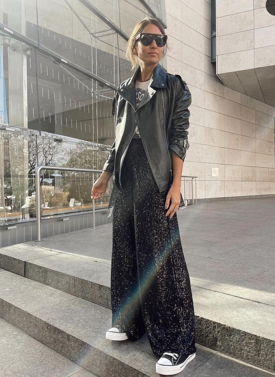Combiná las clásicas zapatillas urbanas con prendas de sastrería e incluso con vestidos elegantes. También podés usarlas con faldas midi tejidas o de tela satinada, logrando así un look muy canchero y estiloso.