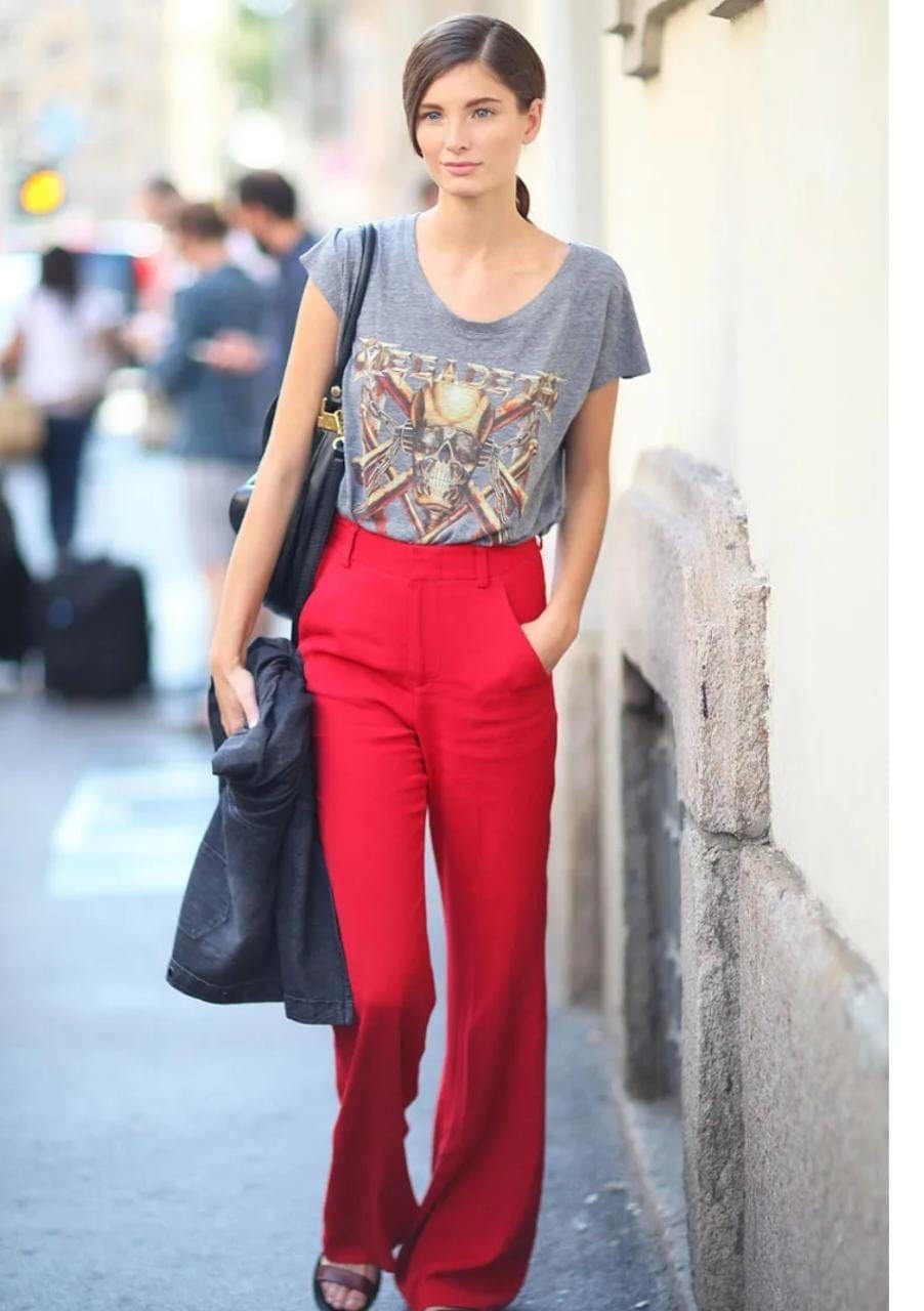 Durante muchos años las remeras con diseños gráficos fueron un must de los guardarropas para luego quedar relegadas. Este año volvieron y además de combinarse en los clásicos looks casuales, ahora se combinan con pantalones sastres dandole un giro casual a una prenda claramente formal.