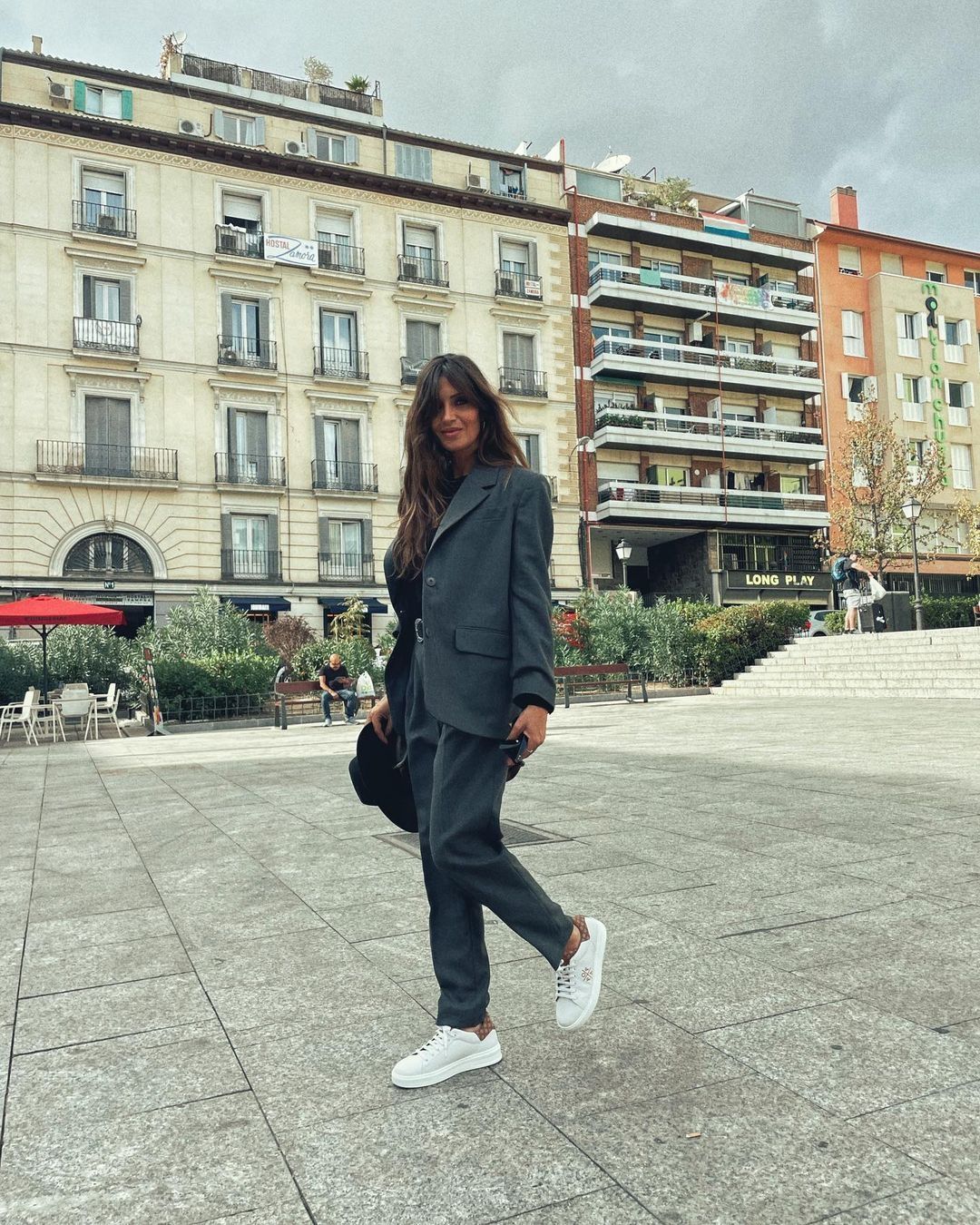 Por ejemplo, Sara Carbonero se decantó por un traje gris de pantalones slouchy y blazer holgado con hombreras junto con una camiseta negra, bolso negro y zapatillas blancas con toques en animal print. Además de usar zapatillas que contrastan con el estilo del traje, la influencer añadió el color negro para diferenciarse del gris demostrando que no es necesario llevar un color opuesto, pero sí uno distinto.