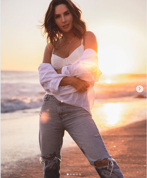 Entre sus diferentes opciones, Carmen Villalobos opta por sus jeans más chic y gastados, un poco sueltos y tiro alto con roturas. En este caso lo combinó con un crop top blanco estilo corset. Para definir el look usó una blusa transparente blanca bien suelta, un modelo que puede ir tanto con tenis como con sandalias de plataforma, según donde se vaya.