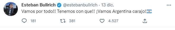 Y este martes, cuando Argentina logró su pase a la final del Mundial de Qatar 2022 con una victoria ante Croacia, el exsenador volvió a insistir en la idea: "Sigamos soñando. Tenemos con qué".