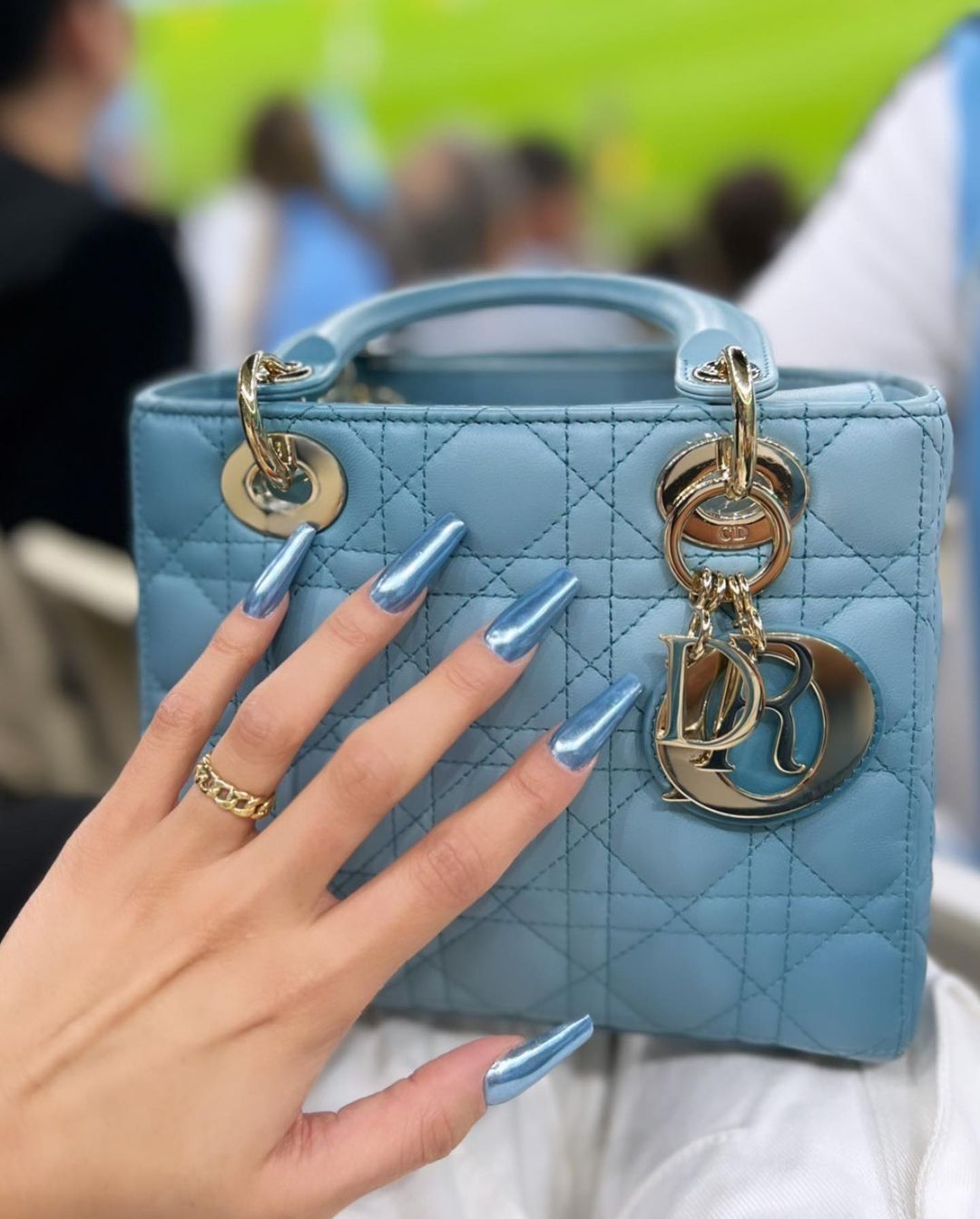 Como nota de estilo para ir a alentar a la Selección argentina, la top María Cavalo pintó sus uñas del mismo tono de su bolso Lady D-Joy, cuyo valor ronda los 4.800 dólares. Más allá de su llamativo color, este bolso mantiene la estética minimalista de la línea Lady Dior y trae charms con las letras de la firma francesa.