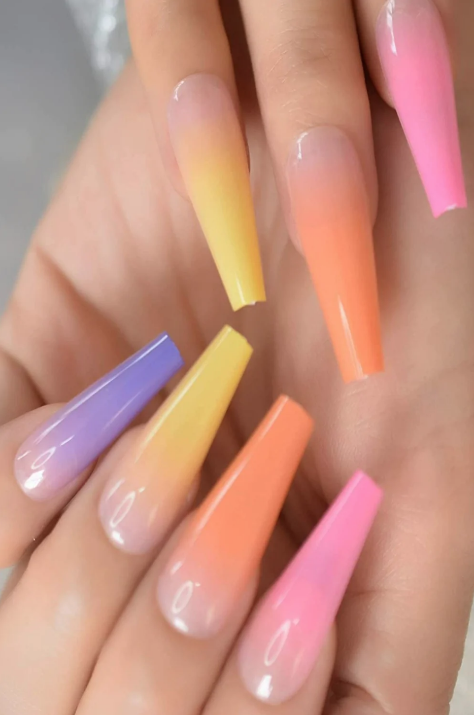Para crear una manicura de gradiente, puedes utilizar una esponja de maquillaje o una toalla de papel mojada para aplicar los colores de forma gradual. Encontrarás cientos de tutoriales en TikTok.