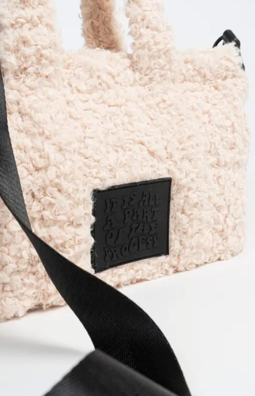 Las bolsas realizadas con tela simil corderito aportan un estilo más descontracturado y cálido, además suelen tener formas más suaves que ayudan a su apariencia delicada.