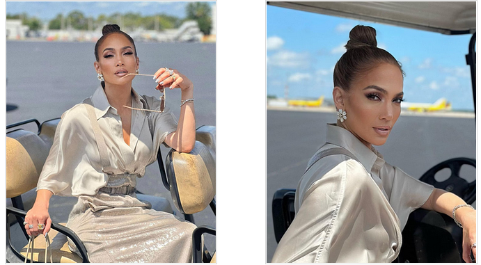 En un color crema y nude, Jennifer Lopez se muestra estilosa y moderna aunque formal. Fuente. Instagram @jlo