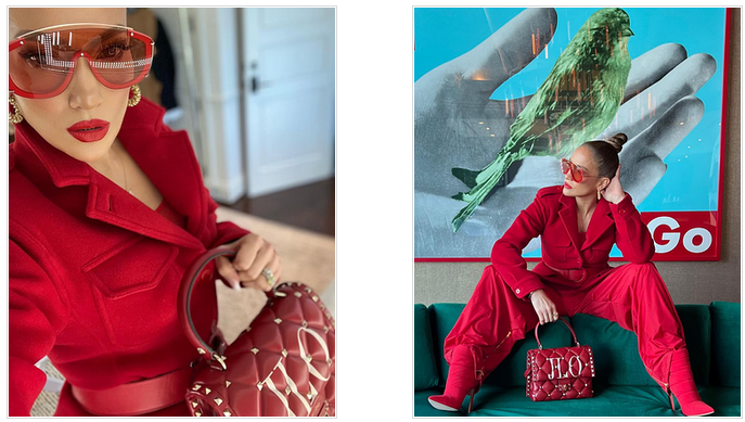 Cuando Jennifer Lopez respeta una gama y se propone un look mono cromo de alto impacto ¡sin dudas es rojo y en cada detalle!