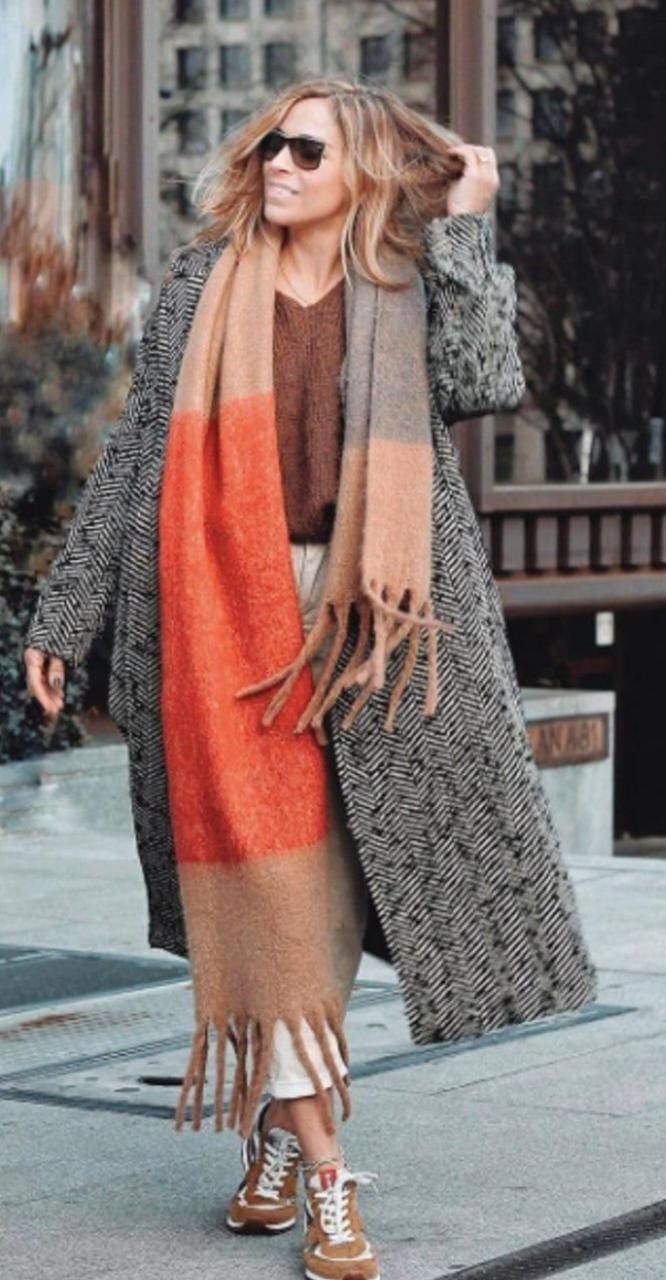 Si de generar efectos visuales hablamos los accesorios son un gran aliado. Para estilizar la zona del cuello y el torso, elegí pañuelos pequeños y bufandas que no sean voluminosas. Usalos en forma vertical o, los pañuelos, anudados con nudo bajo simulando un escote en V para generar el efecto de alargar la zona. De esta forma vas a estar abrigada sin sumar volumen al área.