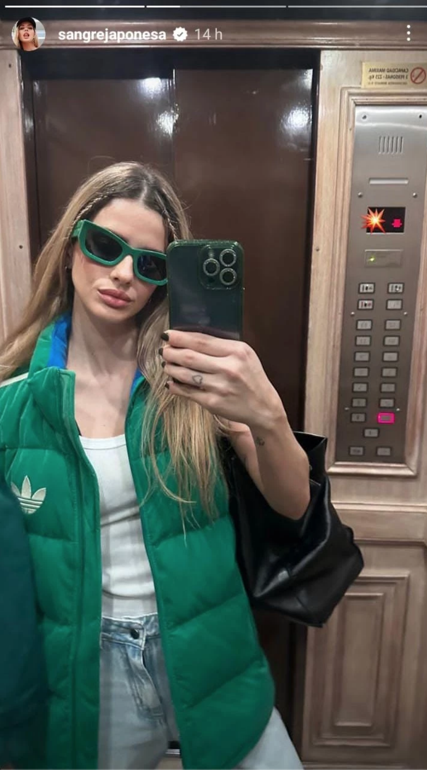 Y así fue que los fanáticos de ambas notaron que la artista compartió una selfie en la que posa frente a un espejo con un elegante chaleco puffer en un vibrante tono verde.