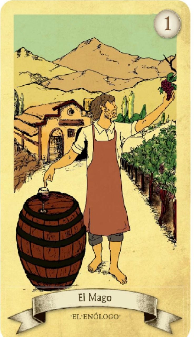 Mago es quien tiene la capacidad de convertir una materia prima en algo elaborado y cambiado desde lo que es originalmente. En la imagen vemos como de la uva se llega al vino. Todo un proceso de elaboración y técnica hecha por el enólogo.