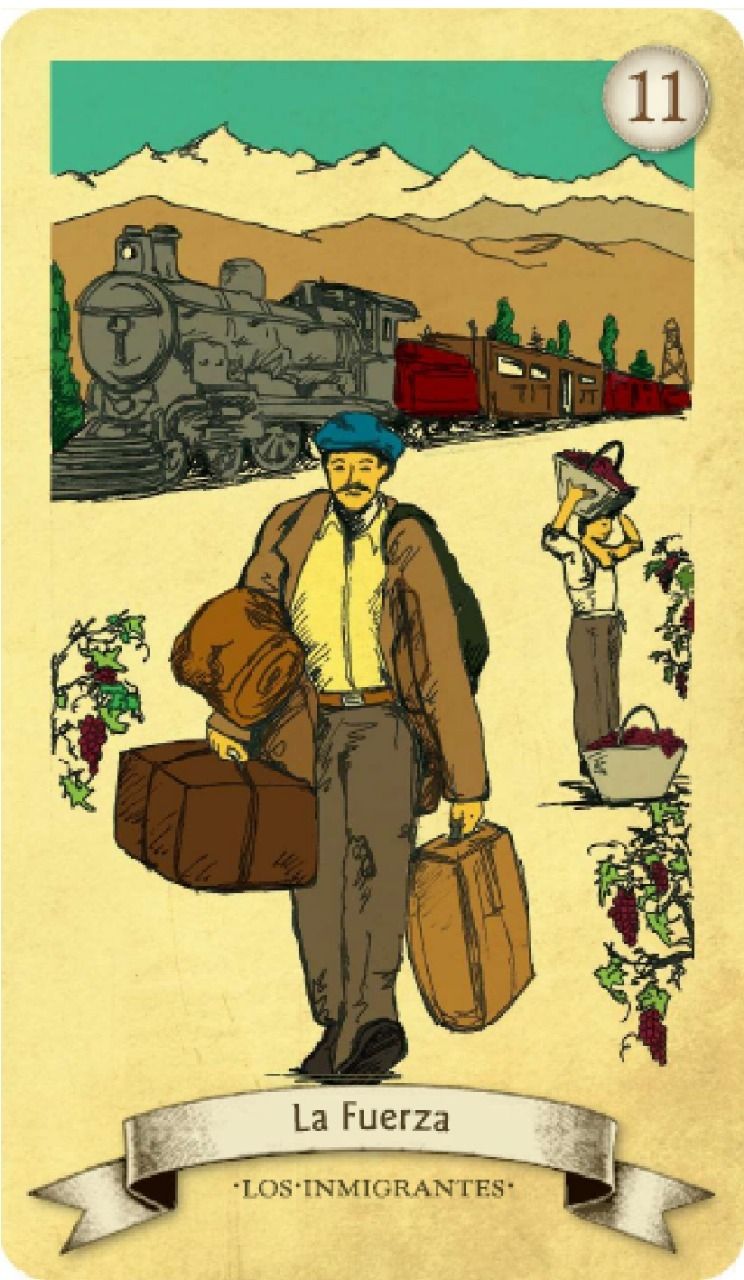 La voluntad es una gran herramienta de la personalidad para vencer dificultad, en esta carta el personaje bajando del tren y sus maletas nos muestra como todos nuestros ancestros y aún hoy llegan inmigrantes a establecerse en nuestra provincia, donde en distintos tiempos cambiar sus costumbres y adaptarse al clima, a esta sociedad y su cultura, exige fuerza y voluntad.