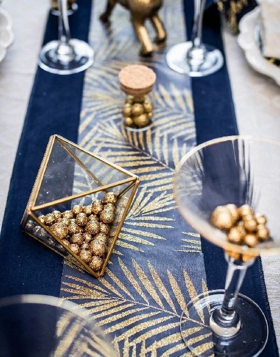 Negro y dorado. Si te gusta que los colores contrasten entre si es una muy buena opción tanto en la mesa como en algún rinconcito que te guste para darle un toque festivo.