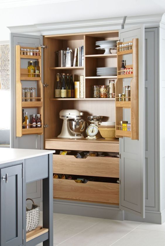 Otra forma de mantener todo ordenado son los cajones con separaciones y estantes con poca profundidad en puertas como se ve en los ejemplos siguientes.