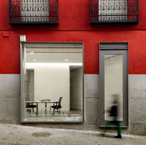 Y por último, para contrastar o llamar la atención. Aplicado en una fachada, donde la materialidad es fría y simple.
