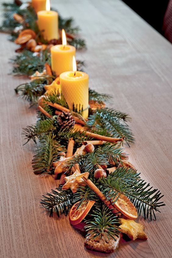 Como camino de mesa acompañadas de hojas verdes para complementar. Me encanta como se ven esos colores juntos.