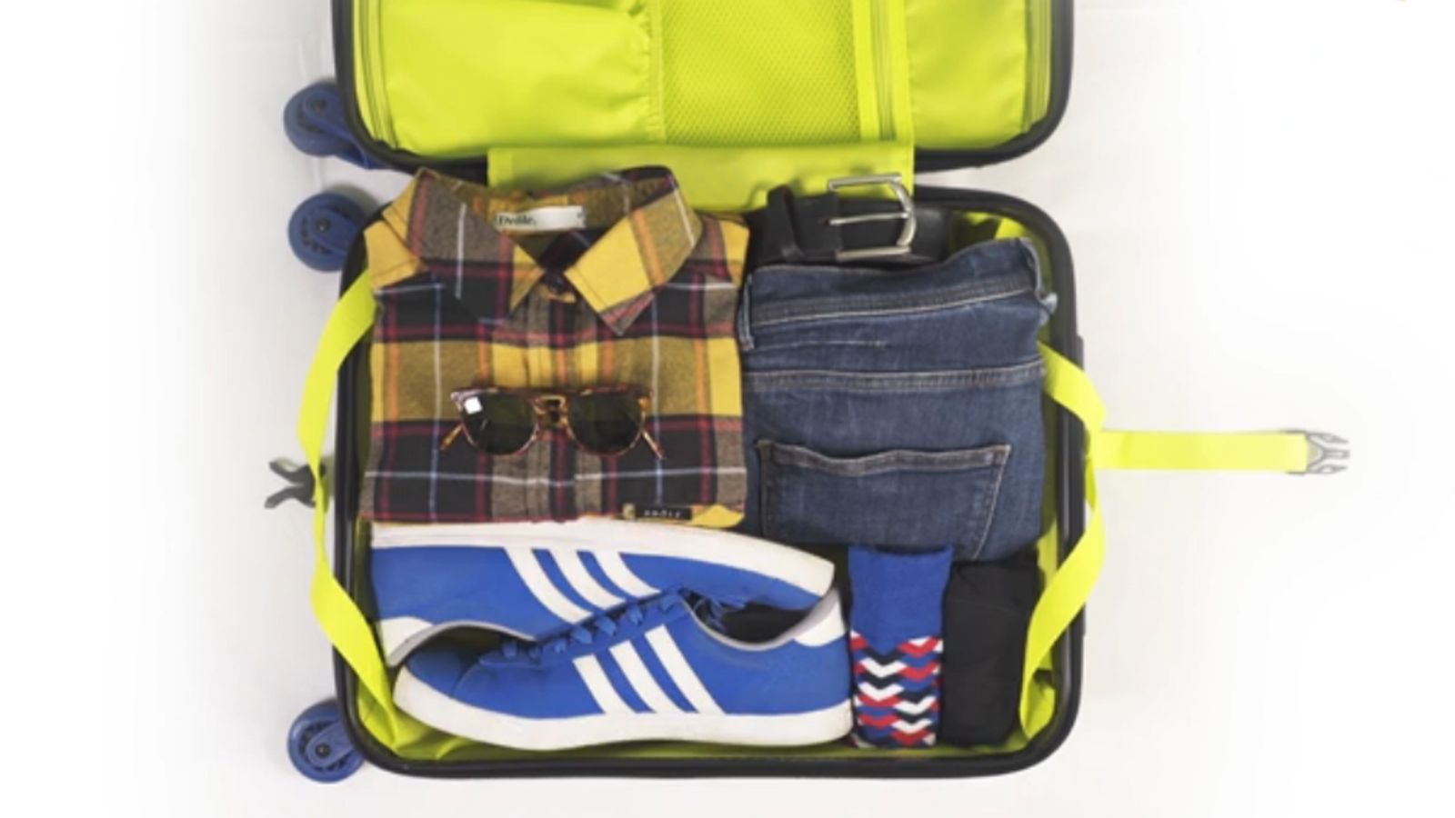 Colocar primero las prendas que más pesen (como vaqueros y zapatos) en la parte inferior y dejar las más delicadas para el final. Las prendas de algodón pueden ir enrolladas para que ocupen menos y aprovechar el espacio que quede en las bolsas de los zapatos para meter los calcetines y/o la ropa interior.