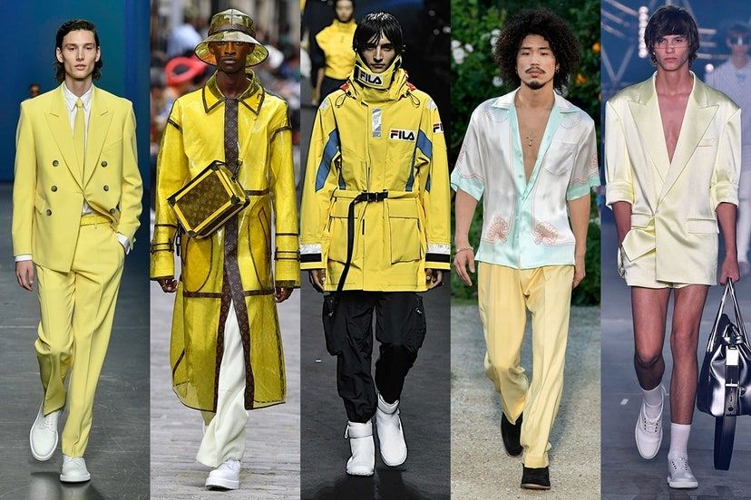 Igual que ocurre con el rosa, tienes total libertad a la hora de elegir el tono: el limón (Fila), el casi fosforito (Louis Vuitton), el ácido (Boss) e incluso el pastel casi imperceptible (Balmain). Si eres un valiente, sumérgete en una piscina amarilla y apuéstalo todo al este color. Si no quieres arriesgar tanto, elige una prenda en esta tonalidad y el resto en tonos suaves/pastel o neutros para completar el look.