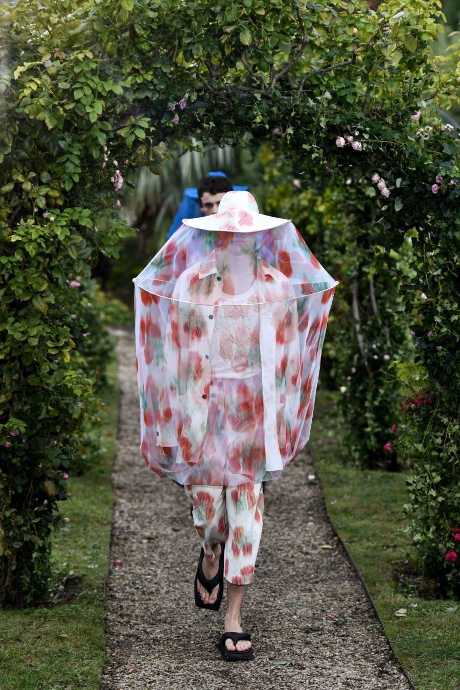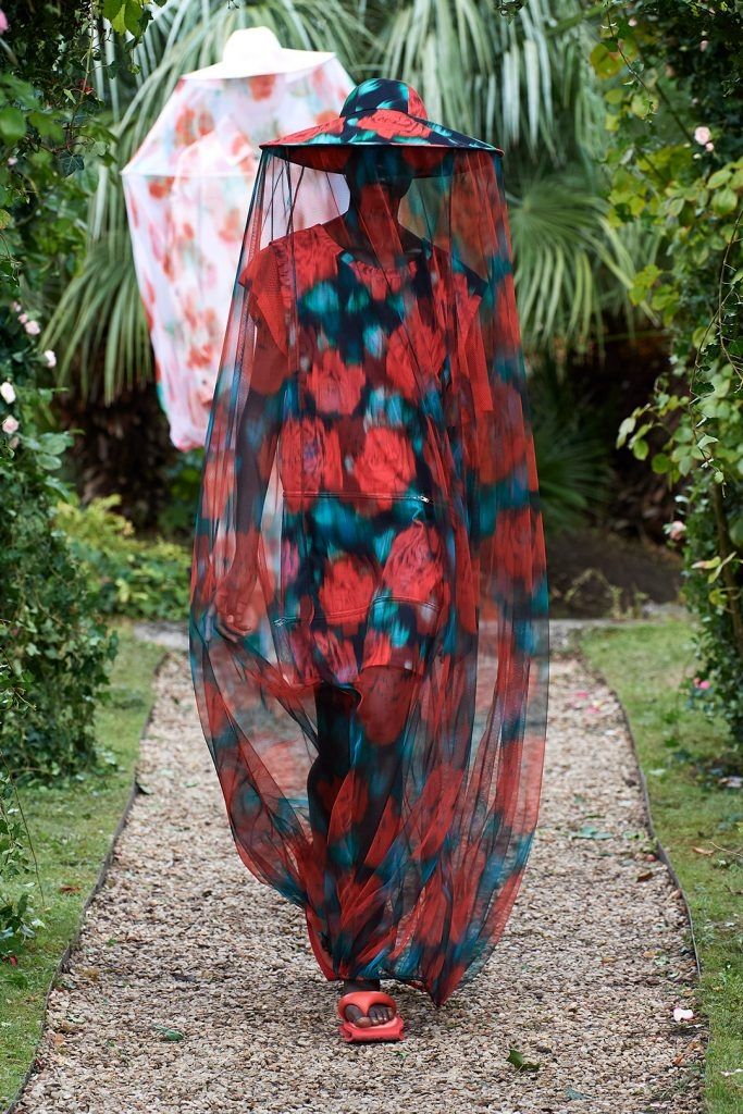 Las amapolas y hortensias de archivo Kenzo recibieron un efecto de llanto digital. De las flores, la sensación primordial de protección y capullo surgió como una oda a las abejas, reguladoras del planeta. Ahora, más que nunca, nos abruma un sentido de urgencia por cuidar y proteger nuestro mundo. Las abejas y los apicultores con sus fascinantes ropas y sombreros que hacen eco con tanta fuerza de la fragilidad y la distancia impuesta y necesaria hoy.