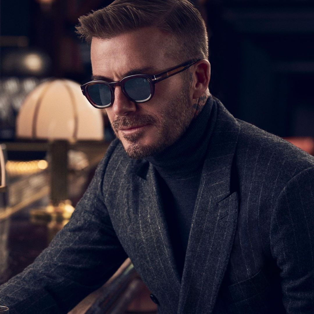 Para presentar su propia línea de gafas, ningún modelo mejor que él… Este año el exfutbolista inglés estrenó una colección de gafas con su nombre, y él mismo se puso al frente de la campaña promocional con su mejor look de galán británico clásico, elegante y effortless. Mejor imposible.