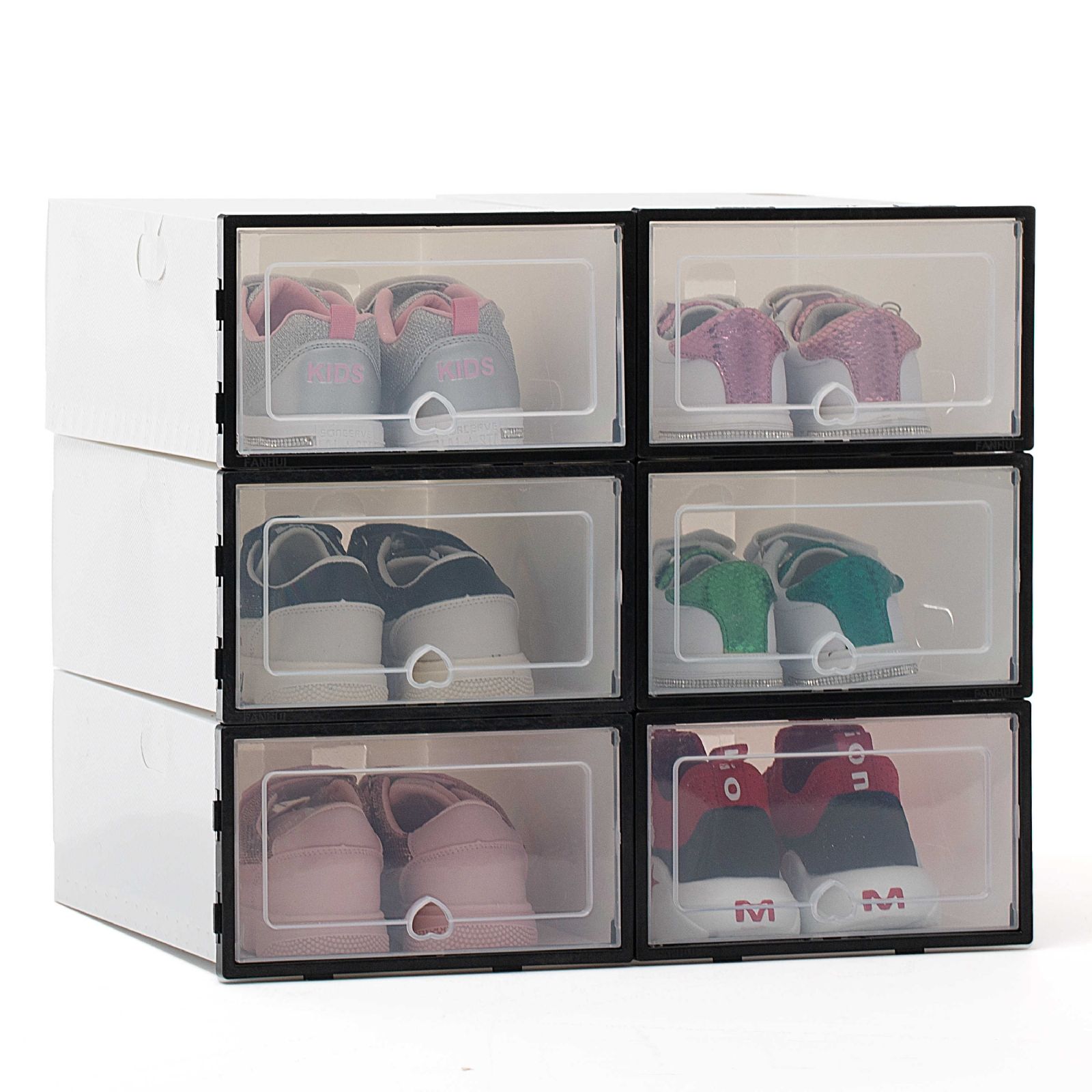 Si te gusta la idea de las cajas y tienes espacio suficiente para guardarlas, utiliza unas transparente que te faciliten a la hora de elegir tus zapatos, al mismo tiempo que son prácticas para guardar incluso dentro del armario y facilita el proceso.
