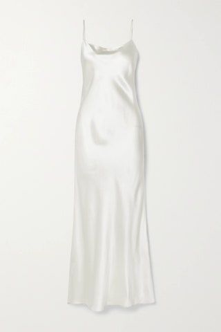 Es que ella, tan romántica y delicada, marcaba tendencia cada vez que aparecía con un modelo similar. Los vestidos lenceros de acabado satinado y tirantes espagueti en colores neutros y empolvados que fueron un must en los 90s nunca han dejado de estar de moda.