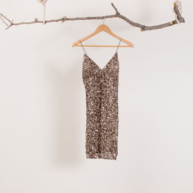 Los mismo sucede con el vestido Forever XXI. Sus lentejuelas le dan al look un toque especial de celebración. Es que los apliques, brillos y bordados están aprobados para el fin de año.