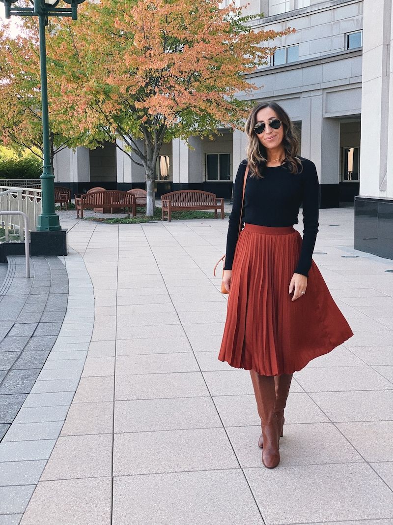 - Faldas a la rodilla, rectas o evasé.