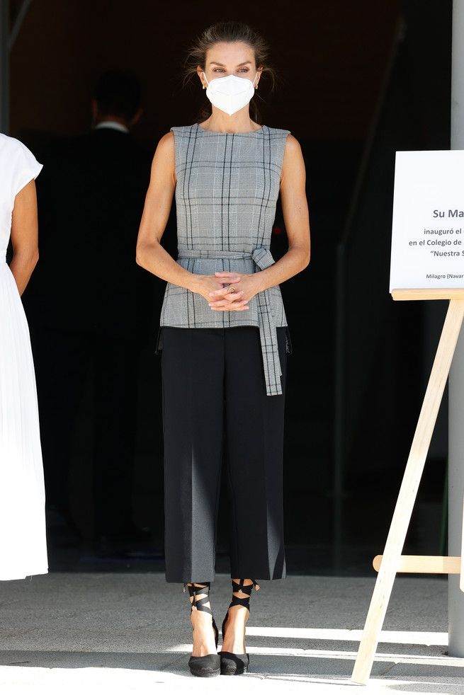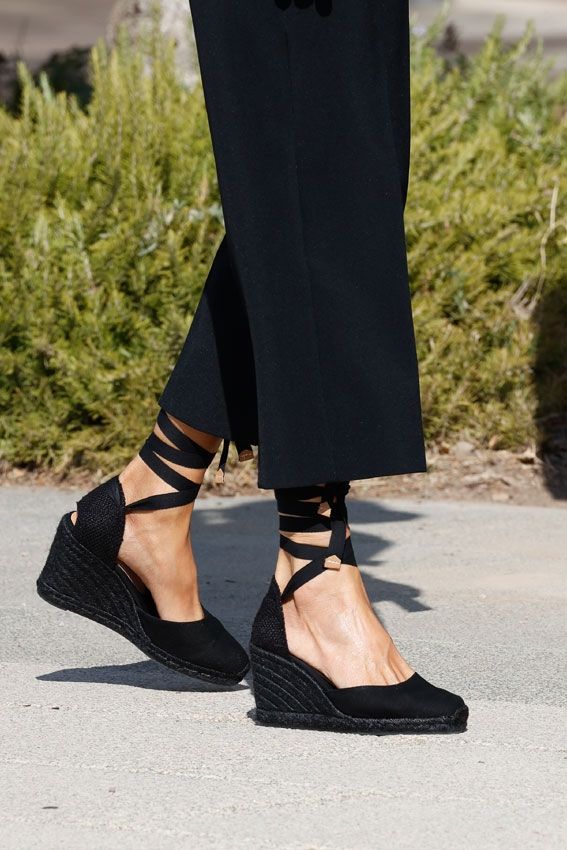 El calzado del verano europeo sin duda son las alpargatas negras con cuña de Castañer que la reina Letizia estrenó por primera vez el pasado julio durante su visita a la Comunidad de Aragón, pero que hoy repitió. Ya que Letizia visitó colegios.