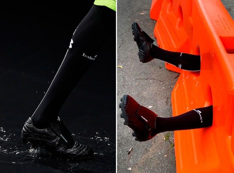 La apuesta la hizo Balenciaga, quien incluyó en su colección de otoño invierno 2020 equipaciones de fútbol donde no faltaba ni camiseta ni botas de fútbol, tacos incluidos, combinados con unos medias o calcetines altos. Estamos hablando de los polémicas ‘zapatillas Soccer’ que salieron a la venta la semana pasada en la propia web de la firma y también en otras tiendas online de retailers como Saks Fifth Avenue.