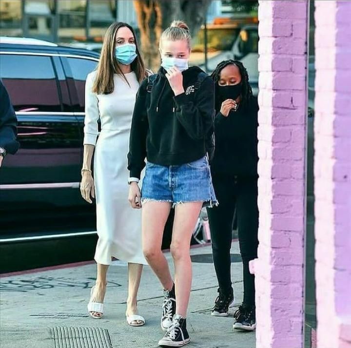 Lo cierto es que, Shiloh está creciendo muy rápido y ya se encuentran y la estatura de su madre y durante los últimos días fueron captadas al salir de compras. La joven, por primera vez, fue vista utilizando un short cortos de mezclilla muy utilizado entre las adolescentes.