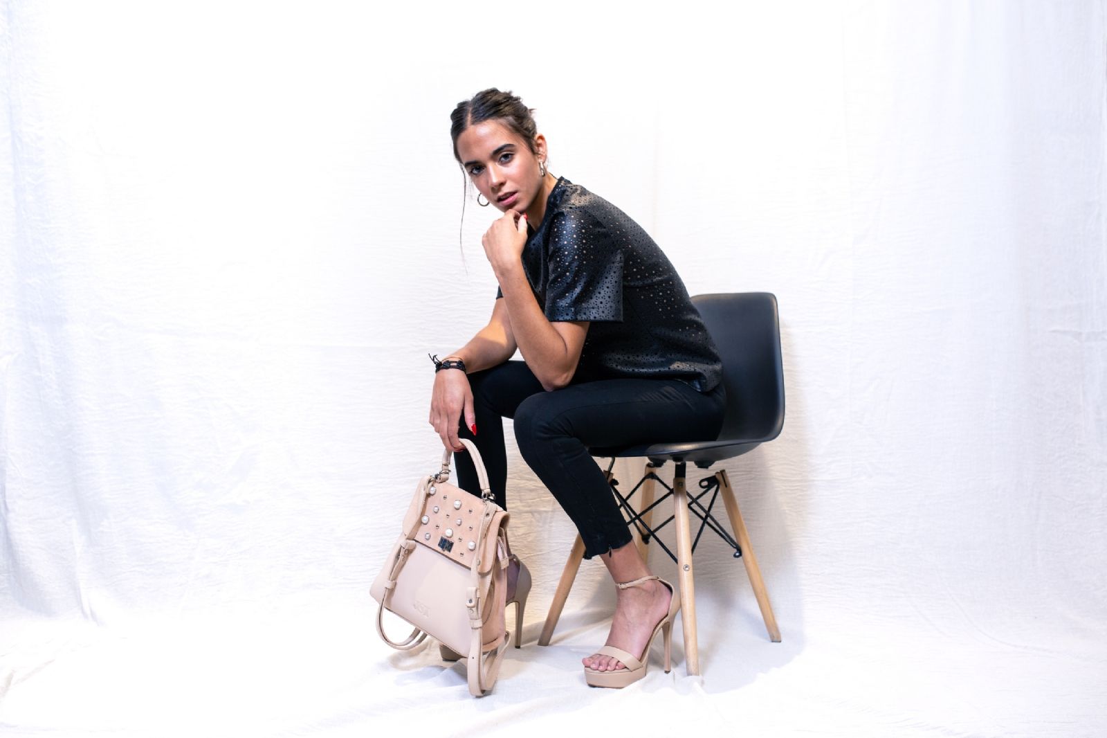 En este mega look que eligió la influencer mendocina Berni Vaia se combinan diferentes ítems de moda que todas deberíamos tener: pantalones negros, remera negra con onda, sandalias y cartera nude.