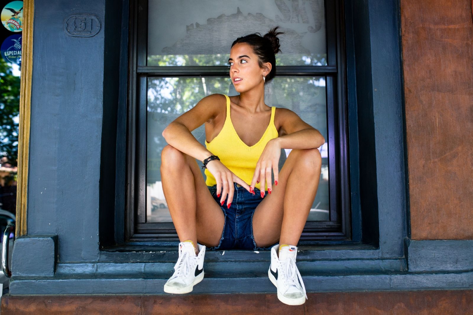 Aquí, en cambio, la influencer combinó de nuevo el amarillo, que además en pieles bronceadas como la de ella queda genial, con un short de jean. Otro must have de la temporada estival, pues un pantalón de denim así podemos usarlo tanto para el día como para la noche, combinado con una camisa oversize abierta y un top o sólo con una camisa.