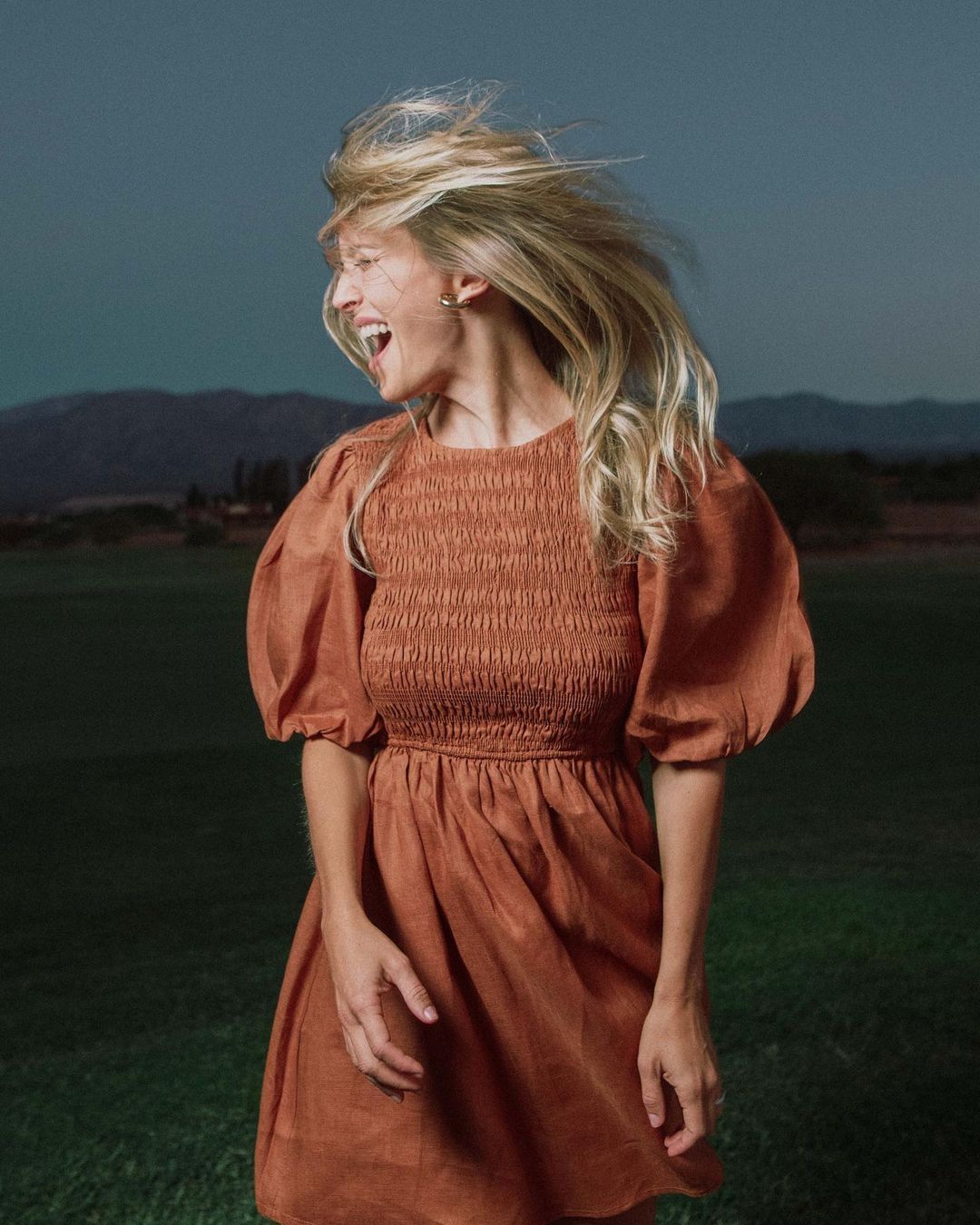 Este vestido marrón con pechera elastizada y mangas vaporosas es todo lo que está bien. Su largo es súper cómodo para un día de verano, ya que no es ni demasiado corto como para sentirnos incómodas según qué actividad estemos realizando; ni demasiado largo como para que no funcione en mujeres más petit.