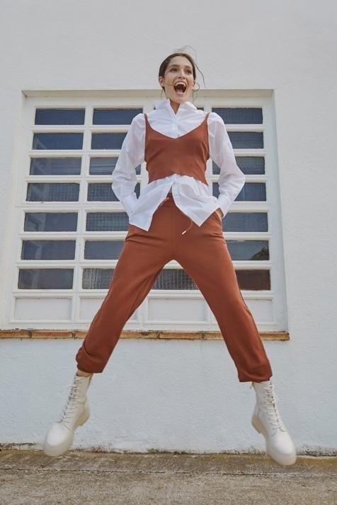 El diseño es jogger, con tejido de felpa, tiro alto, bolsillos delanteros, cintura elástica, bajo acabado en puño y disponibles en siete colores: gris, negro y beige o entre los tonos más atrevidos de la temporada: el malva, el rojo o el color teja, el más agotado de toda la colección.