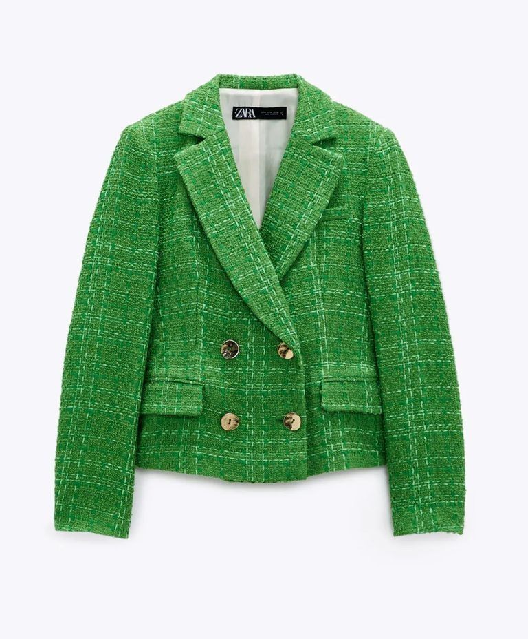 Pero, ¿a qué nos recuerda? Al estilo de la personaje Emily Cooper de “Emily en París” que siempre vestía con colores vibrantes y alegres como el verde, fucsia o lila. Además, el tejido de la chaqueta tan elegante y con algunos rasgos Chanel, también nos recordaba al estilo de la morocha. Aunque será difícil comprarla, esperamos que la marca española lance algunos clones de este saco o una nueva edición.
