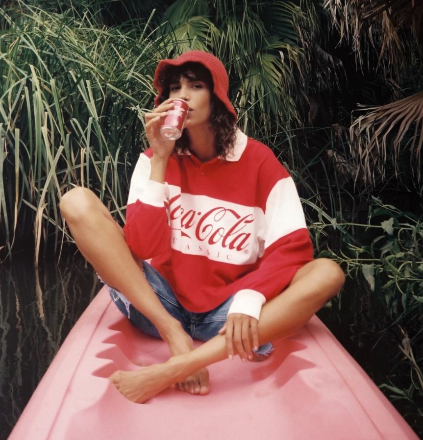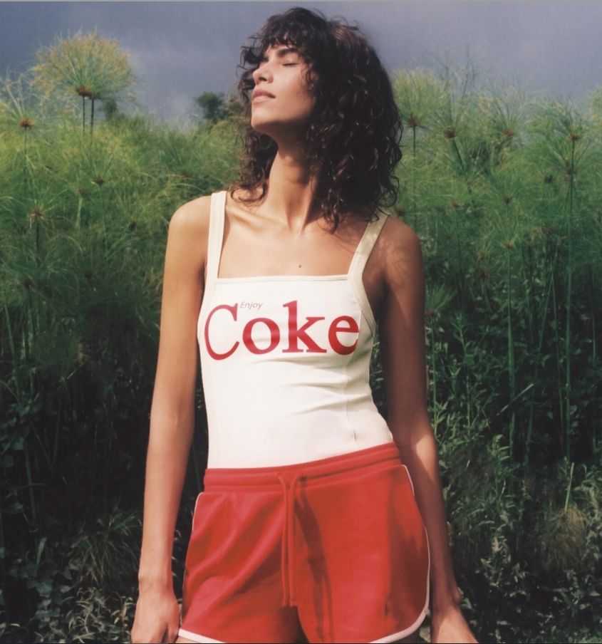 No es la primera vez que Coca-Cola aparece en las colecciones de las marcas. Esto ocurrió también en 2018, cuando hizo una alianza con KITH, la marca deportiva que nació en 2011. La influencer Emily Ratajkowski lució un cropped topde manga larga estilo chomba que combino con un short de jean y unas zapatillas Fila.