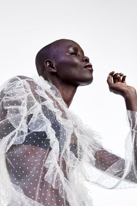 Zara ha sacado sus propias camisas con estampado de puntos, pero las recrea de modo diferente. Les mostramos esta opción que también será muy llevada este invierno: transparente, con puntos, en blanco y volados en las mangas y en el pecho. Una elección que podemos usar de día con Jeans o de noche con pantalones negros o brillantes.